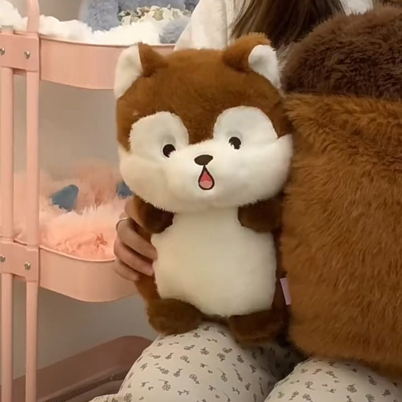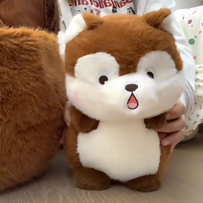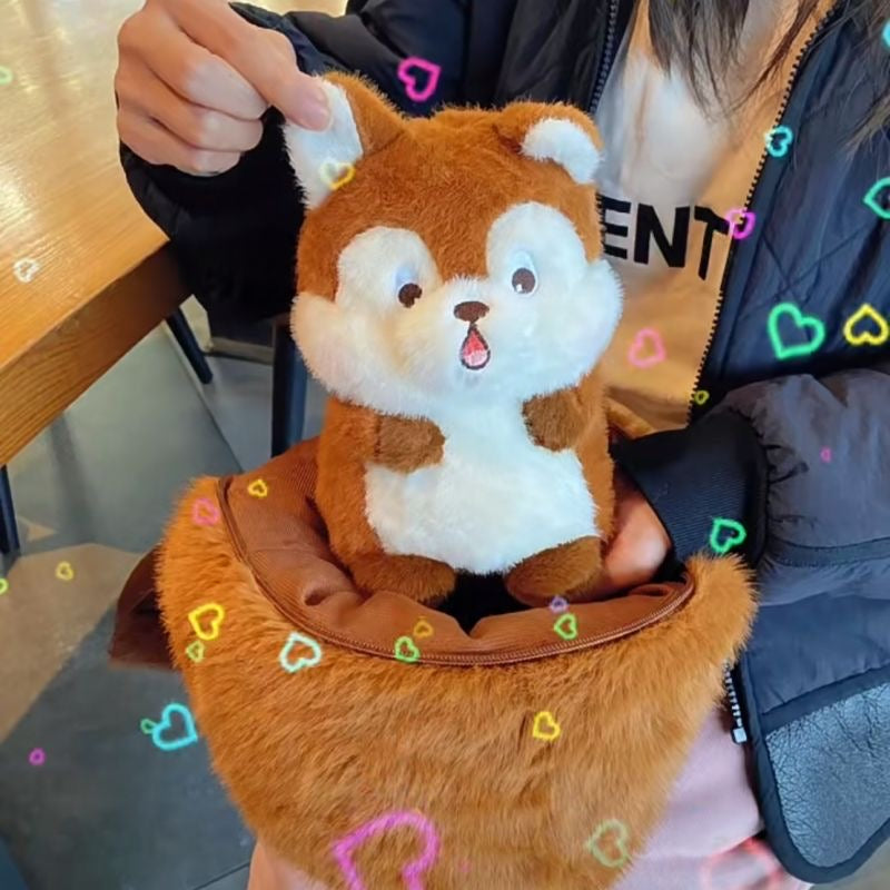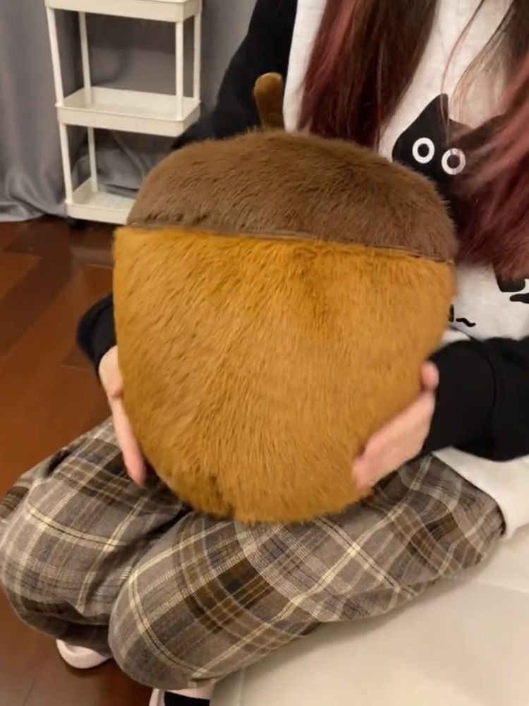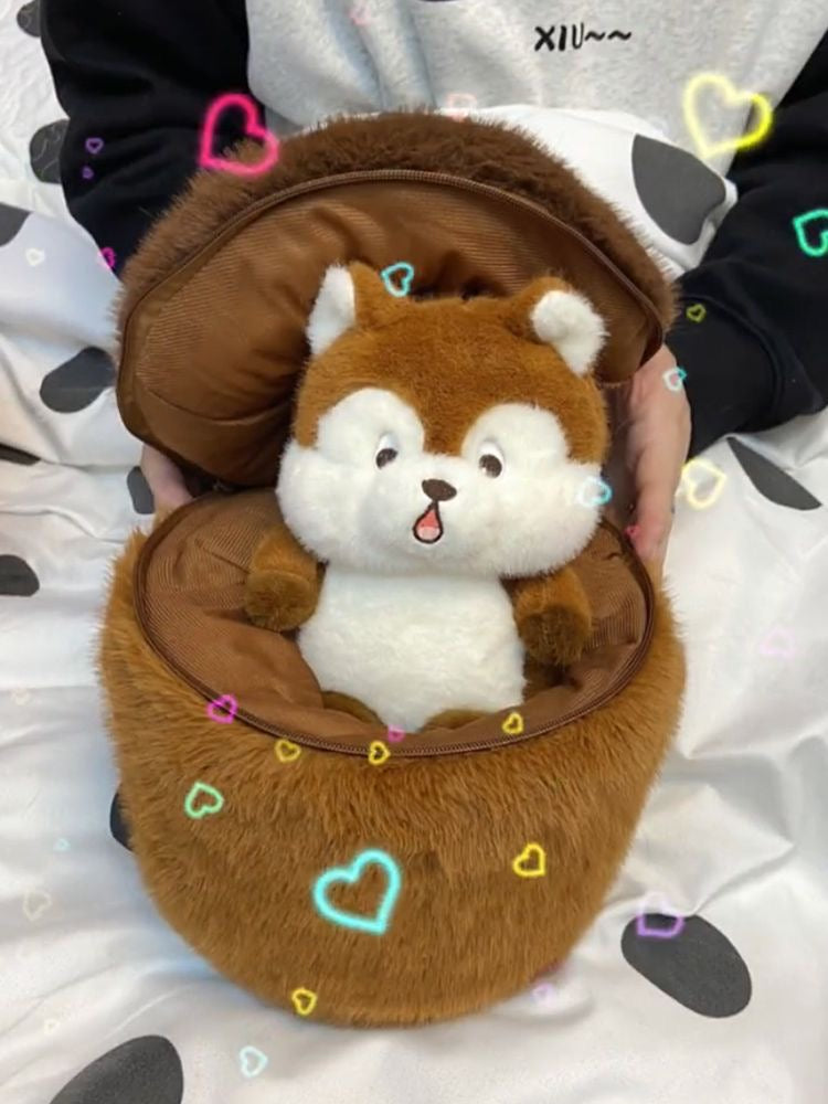 Una ardilla tímida escondida en una bellota.