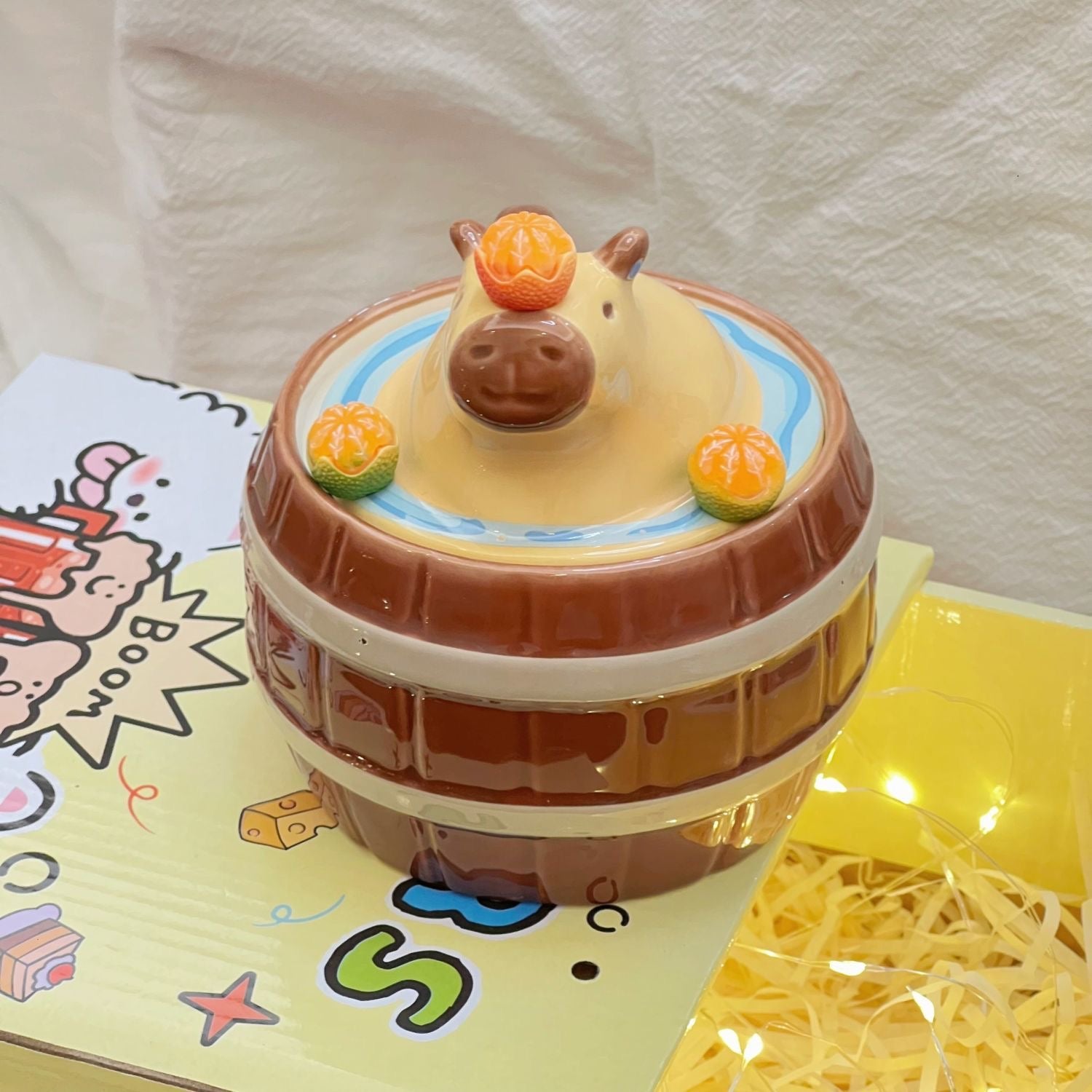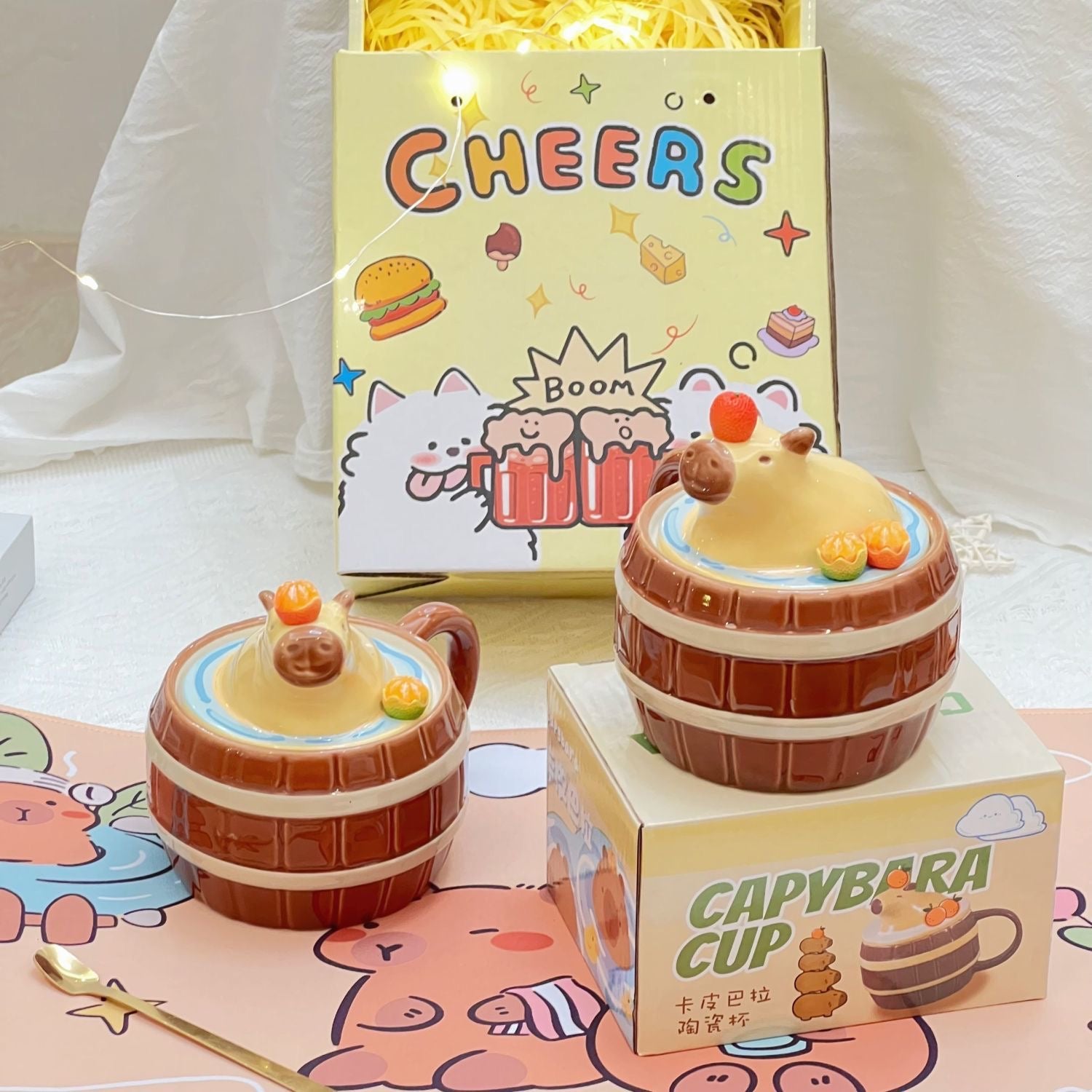 🍩 Taza de desayuno perfecta para disfrutar de tu bebida favorita con tus amigos o en familia, en la casa o en el trabajo, conviertiendose en una vaso ideal como tazón cereales. Posee una tapadera decorativa con tu personaje, elige esta taza con tapadera Capybara