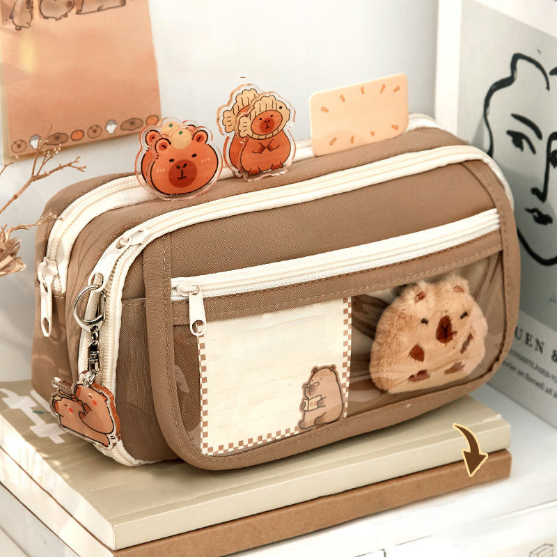 GRAN CAPACIDAD - DISEÑO DE PARTICIÓN INDEPENDIENTE: el estuche para lápices adopta un diseño de ventana de doble apertura de múltiples capas, un total de cuatro compartimentos, almacenamiento de partición, almacenamiento independiente, para que la papelería grande y desordenada esté mejor organizada. La capacidad extra grande puede contener alrededor de 65 bolígrafos y otros útiles escolares en total, y el bolsillo inferior puede contener tijeras, reglas, calculadoras, etc.