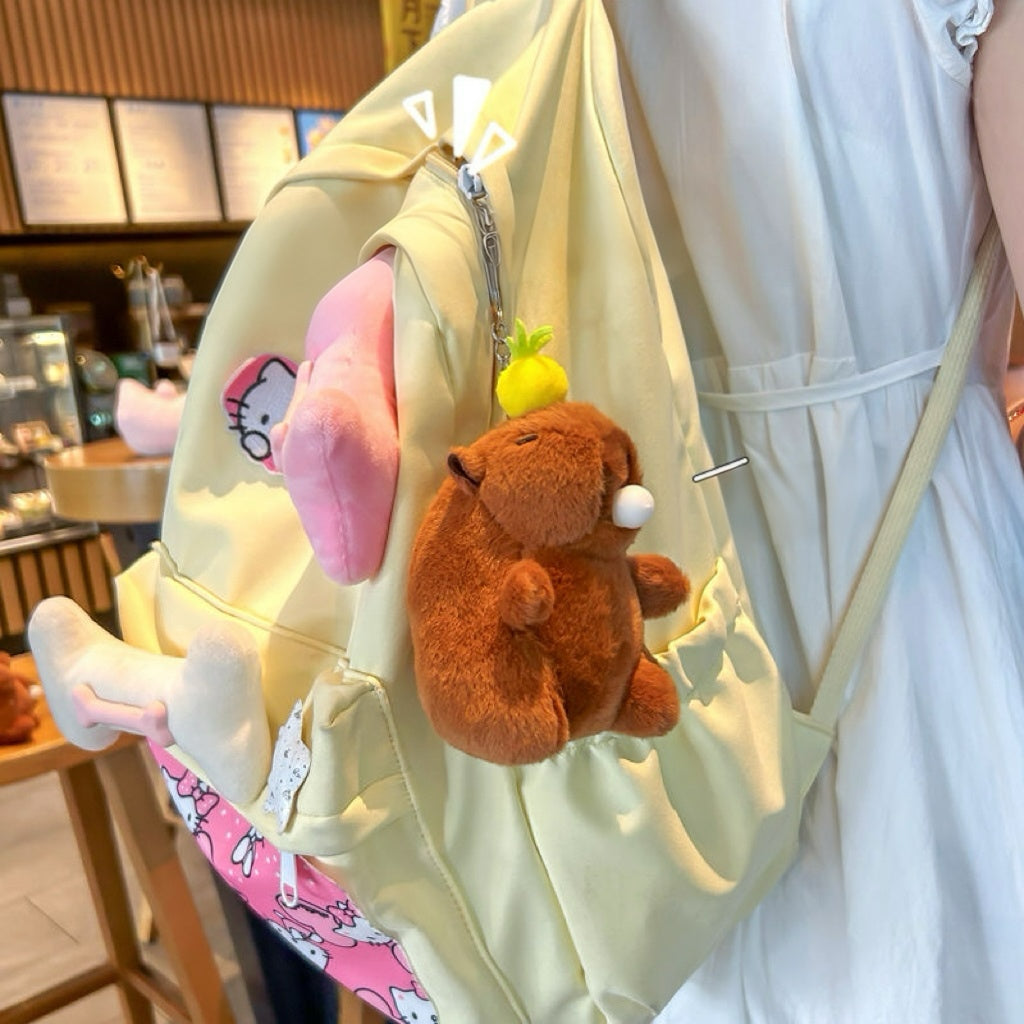 Diseño único: Capibara de peluche con pequeños adornos de frutas, que aporta un estilo fresco y diferente.
